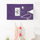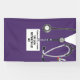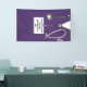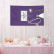 Creative Medical School Graduiertenbanner für Doktorgrad mit lila Peeling, Stethoskop und lustigem Schweizer Armeemesser. Text bearbeiten, um Namen und medizinische Referenzen hinzuzufügen.