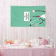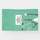 Banner der Doktorabschlussfeier mit kreativen Skrupeln und Schweizer Taschenmesser-Design. Bearbeiten Sie den Text, um den Namen und die medizinischen Referenzen des Arztes hinzuzufügen.
