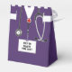 Medizinische Gastgeschenk-Boxen für Doktoranden, mit lila Krankenhausaufnahmen. Bearbeiten Sie den Text, um ihn für die Feiern des medizinischen Abschlusses zu personalisieren.
