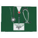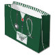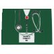Kreative Medizin Schule Abschluss Geschenktasche für Doktorgrad mit grünen Krankenhaus-Skrupel und Stethoskop. Bearbeiten Sie den Text, um den Namen und die medizinischen Referenzen des Arztes, Arztes oder Pflegepersonals hinzuzufügen.