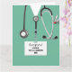 Kreative Medizin-Abschluss-Karte für Doktorgrad, mit Klinik-Peeling und lustigem Schweizer Armeemesser in der Tasche. Bearbeiten Sie Text, um seinen Namen hinzuzufügen.