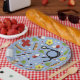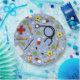 Abschluss von kreativen Ärzteschule oder Geburtstagsparty Teller mit einzigartigen Gesundheitsvorräten und Blume.