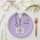Kreatives medizinisches Design mit Lavendel-Klinik und einem Schweizer Armeemesser in der Tasche. Bearbeiten Sie den Text, um den Namen des Arztes hinzuzufügen.