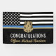 Dieses Design verfügt über eine Polizeiflagge mit schwarz-weißen Streifen und einen dünnen blauen Streifen. Ein großartiger Weg, um der neuen Polizei-Akademie zu gratulieren. Passen Sie den Namen des geschlossen Strafverfolgungsbeamten in Gold an. Feiern Sie diesen Meilenstein im Stil!