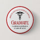 Dieser moderne, in Rot und Schwarz gehaltene Knopf für den medizinischen Abschluss von Schulen bietet moderne Typografie für eine Klasse von 2024 Absolventen. Passen Sie mit Ihrem geschlossen Jahr unter dem Caduceus Symbol für eine große personalisierte Krankenschwester oder Ärztin Geschenk oder Namensschild für eine Arztkonferenz.