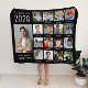 Schwarze Abschluss-Sake-Fleece-Decke mit einer 17-Foto-Collage des Absolventen durch ihre Schuljahre und ihren Namen in einer modernen weißen Typografie. Fügen Sie unter jedem Foto Ihre personalisierten Untertitel hinzu.