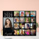 Black Acryl Graduation Party Begrüßungszeichen und Sake mit einer 17 Foto Collage des Absolventen durch ihre Schuljahre und ihren Namen in einem stilvollen weißen Drehbuch. Fügen Sie unter jedem Foto Ihre personalisierten Untertitel hinzu.