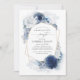 Marineblau und staubblaue Blumen Moderne Graduierung Einladungen