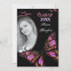 Sweet Abschluss Einladung mit Schwerpunkt auf schönen rosa Schmetterlinge. Personalisieren Sie, indem Sie Probe-Foto mit dem Foto des Absolventen und ändern Sie ALLE Informationen inklusive Jahr, um es zu Ihrem eigenen machen.