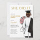 Sie hat es Medical oder Krankenpflege Schule Abschluss Einladung zeigt weiblich mit braunen Haaren in niedrigen bun gezogen, in Labrador Mantel mit Stethoskop und rosa Blumentext liest SHE DID IT. Med School Abschluss oder Krankenpflege Schule Abschluss Party Einladung für Frauen, die Abschluss der Med-Schule oder Krankenpflege Schule. Einladung für sie leicht zu personalisieren.
