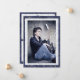 Eleganter und moderner Weg zu teilen, wie stolz Sie sind auf Ihren Sohn oder Ihre Tochter und ihre Errungenschaft der High School, Universität der Uni. Schöner weißer Marmor und blauer Marmorrand. Im Hintergrund finden Sie eine Graduierungshülse und ein typografisches Wort. Raum für Sie, um Ihre persönliche Nachricht hinzuzufügen.