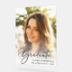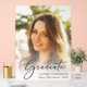 Begrüßungsschild und Sake der Graduiertenparty mit Akademiker Foto, überlagert mit "Graduate" in einem eleganten Drehbuch. Fügen Sie ihren Namen, das Klassenjahr und die Schule in der einfachen modernen Typografie.