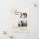 Teilen Sie Ihre großen Neuigkeiten mit dieser 5" x 7" Zoll Abschluss-Ankündigung mit dem Gruß "Das Abenteuer beginnt" auf einem hellen Holzkornhintergrund und Platzhaltern für drei (3) Ihrer Lieblings-Fotos; eins vorne und zwei hinten.