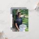 Moderne Textbox ganz unten auf Volltexteinladung mit Akzent-Box und gestreiftem Design Graduation Party Informationen auf der Rückseite.