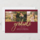 Abschluss 4 Foto Collage Script Burgundy Gold Ankündigung für die Klasse von 2025. Passen Sie diese einfach an, indem Sie den Text ändern und die Fotos durch Ihren ersetzen. Eine moderne und trendiere Art, Ihren Abschluss in diesem Jahr bekannt zu geben!