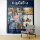 Foto Collage Gold Script Graduierung Party Foto Stand Hintergrund für den neuen Grad. Verfügt über 4 Fotos des Absolventen, und das Wort "Glückwünsche" ist Set. Fügen Sie ihren Namen, die Uni der Schule und das Klassenjahr des Abschlusses hinzu, indem Sie auf "Personalisieren" klicken.