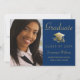 Mit dieser eleganten personalisierten Foto-Flachbildkarte kündigen Sie Ihren Abschluss 2020 an. Das Design zeigt Ihr Foto auf dem links (3,5 Breite x 5 Höhe arbeitet am besten) auf der rechten Seite auf einem königsblauen Hintergrund ist ein Imitat goldene Grade Kappe und Diplom und Imitate Gold Typografie in einem modernen Skript für Sie anpassen. Herzlichen Glückwunsch zu Ihrem Abschluss! Entworfen von der Künstlerin Susan Coffey.