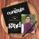 Mit dieser atemberaubenden, einfachen, modernen, personalisierten Ankündigung kündigen Sie an, dass Ihr Lieblingsgrad ihren Meilenstein erreicht hat. Die goldene, krasse, grafische, weiße Typografie und die goldene Folienkopie der Imitate überlagern einen schwarzen Hintergrund. Fügen Sie auf der rechten Seite ein Foto Ihrer Wahl hinzu. Personalisieren Sie den benutzerdefinierten Text mit dem Namen, dem Namen der Schule und dem Unterrichtsjahr Ihres Absolventen. Auf der Rückseite, unter der fett gedruckten "Glückwunsch" Grafik, fügen Sie Ihre persönliche Note, nächste Schule sie besuchen, Party Informationen, etc. In dieser trendigen und stilvollen Kollektion stehen Ihnen auch passende und koordinierende Dankeschön-Karten, Oberkappen, Ventilatoren, Servietten, Teller, Banner und andere Abschluss-Goodies zur Verfügung. Garantiert, um ihren besondere Anlass mit stilvollem Spaß zu versehen!Ersetzen Sie einfach das Foto mit einem Ihrer eigenen, geben Sie den Namen Ihres Abschlusses, den Namen der Schule und das Jahr der Klasse ein, und Sie können diese Ankündigung des Abschlusses ganz einfach personalisieren. Bitte schicken Sie mir eine Nachricht mit Fragen oder Wünschen.