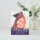 Vielen Dank an Ihre Familie und Freunde für ihre Abschluss Geschenke und gute Wünsche mit dieser eleganten Foto Postkarte. Diese schicke Designvorlage zeigt Ihr Foto mit einem lila Overlay am unteren Ende und einem modernen, handgeschriebenen weißen Skript, das "Danke" und Ihren Namen und Klasse/Jahr unten lautet. Die Rückseite der Karte hat eine Dankeschön-Notiz und Unterschrift für Ihre personalisieren einen grünen Hintergrund. Herzlichen Glückwunsch zu Ihrem Abschluss! Entworfen von der Künstlerin Susan Coffey.