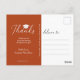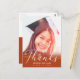 Vielen Dank an Ihre Familie und Freunde für ihre Abschluss Geschenke und guten Wünsche mit dieser eleganten Foto Postkarte. Dieses elegante Design-Template zeigt Ihr Foto mit einem verbrannten Orangenüberlagerungen am unteren Ende und einem modernen, handgeschriebenen weißen Skript, das "Danke" und Ihren Namen und Klasse/Jahr unten lautet. Die Rückseite der Karte hat eine Dankeschön-Notiz und Unterschrift für Ihre personalisieren einen grünen Hintergrund. Herzlichen Glückwunsch zu Ihrem Abschluss! Entworfen von der Künstlerin Susan Coffey.