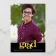 Seien Sie stolz, freuen Sie sich und zeigen Sie diesen Meilenstein Ihres Lieblingsgrades! Senden Sie diese atemberaubende, einfache, moderne, personalisierte Foto-Ankündigung laden zu einer Veranstaltung zu erinnern. Fett, grafisch, weiß und real, mit Goldfolie beschichtet und ein schwarzes Band überlagert ein Foto Ihrer Wahl. Personalisieren Sie den benutzerdefinierten Text mit dem Namen, dem Namen der Schule und dem Unterrichtsjahr Ihres Absolventen. Auf der Rückseite, unter der fett gedruckten "Glückwunsch" Grafik, fügen Sie Ihre persönliche Note, nächste Schule sie besuchen, Party Informationen, etc. In dieser trendigen und stilvollen Kollektion stehen Ihnen auch passende und koordinierende Dankeschön-Karten, Oberkappen, Ventilatoren, Servietten, Teller, Banner und andere Abschluss-Goodies zur Verfügung. Garantiert, um ihren besonderen Anlässen stilvollen Spaß zu bieten! Ersetzen Sie das Foto einfach durch eines Ihrer eigenen, geben Sie den Namen Ihres Abschlusses, den Namen der Schule und das Klassenjahr ein, personalisieren Sie die Nachricht auf der Rückseite, und Sie können diese Einladungsmeldung des Abschlusses leicht personalisieren. Bitte schicken Sie mir eine Nachricht mit Fragen oder Wünschen.