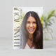 Feiern Sie Ihren Abschluss stilvoll mit unserem Elegant Foto Abschluss Dankeschön Foil Card, ein schlanker und herzlicher Weg, um Ihre Wertschätzung zum Ausdruck zu bringen. Diese individuell gestaltbare Karte zeichnet sich durch ein gepflegtes, zeitgemäßes Design aus, mit Platz für Ihre Lieblingssendungen auf der Vorder- und Rückseite - ideal, um Ihre Senior-Porträts und unvergessliche Abschluss-Momente zu präsentieren. Personalisieren Sie den Text so, dass Ihre Nachricht wirklich Ihre ist, egal ob Sie Freunden, Familie oder Mentoren für ihre Unterstützung danken. Das minimalistische Layout hebt Ihre Fotos hervor und behalte dabei den Fokus auf Ihre Dankbarkeit. Gedruckt auf hochwertigen Cardstock mit lebendigem, farbigem Druck, ist jede Karte ein Sake, den Ihre Lieben lieben werden. Ob Sie sie verschicken oder persönlich ausgeben, diese moderne Dankeschön-Karte ist die perfekte Touch für Ihre Abschluss-Feier. Lassen Sie Ihre Erinnerungen glänzen - und Ihr Dank unvergesslich.