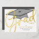 Feiern Sie Ihre Errungenschaft mit diesem Abschluss Goldfolie-Party laden mit einem eleganten Kalligrafieschrift und einem Graduiertenfoto-Template für eine personalisierte Touch ein. Dieses Hotel mit modernem Graduierdeckel und stilvollem Typografie-Design verbindet klassischen modernen Stil mit einer einfachen minimalistischen Layoutklasse. Ideal für Absolventen der Gymnasialschule oder Uni, diese Einladung macht Ihre Seniorenfotografie wunderbar sichtbar und macht sie zu einer raffinierten und unvergesslichen Art, Ihren besonderen Tag zu verkünden.