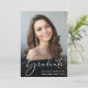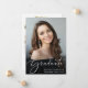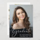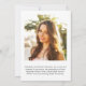 Mit dieser stilvollen Abschluss-Ankündigung kündigen Sie die Leistungen Ihres Absolventen an. Ihr liebstes Foto füllt die Karte mit "Graduate", oben in einem eleganten, weißen Drehbuch geschrieben. Fügen Sie unten ihren Namen, Schule und Jahrgang hinzu. Fügen Sie auf der Rückseite ein zusätzliches Foto und eine personalisierte Nachricht hinzu.
