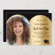 Fügen Sie Ihr eigenes Foto in vertikaler Größe des Absolventen hinzu. Ein goldförmiges Foto aus Imitaten. Ein Imitat mit goldener und schwarzer Hintergrundfarbe. Personalisieren und fügen Sie einen Namen und Party-Details hinzu.