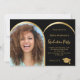 Fügen Sie Ihr eigenes Foto in vertikaler Größe des Absolventen hinzu. Ein goldförmiges Foto aus Imitaten. Eine schicke schwarze Hintergrundfarbe. Personalisieren und fügen Sie einen Namen und Party-Details hinzu.
