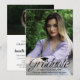 Foto vorne und hinten... Rounded lässig Script Abschluss Einladung Ankündigung mit Mortarboard Graduierung Ikone, perfekt für die High School oder Uni Abitur. Moderne minimalistische Typografie, lässige elegante Schrift "Graduate" Schrift. Erleben Sie diese besonderen Momente des Wachstums und lächeln Sie Freude und Jugend für immer. Laden Sie ein volles Portrait-Mode-Cover-Foto des Absolventen auf der Vorderseite, ein Landschaftsorientierungsfenster-Foto sowie relevante Details der Abschlussfeier auf der Rückseite hoch. Schattet automatisch die perfekten Bereiche des Bildes.