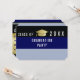 Stilvolles und modernes Graduiertendesign mit horizontalen blau-schwarzen Streifen, mit benutzerdefinierten Textzeilen, um alle Informationen, die Ihre Gäste brauchen, um Ihre Abschlussfeier zu schließen