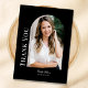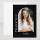 Dieses stilvolle moderne Foto Abschluss Dankeschön-Karte verfügt über ein bogenförmiges Foto mit dem Text "danke" in eleganter Typografie mit anpassbarem Skriptnamen und zusätzlichem Text auf der Vorderseite, um "Klasse von 2025" oder Ihre Textauswahl hinzuzufügen. Schwarzer Hintergrund mit weißem Text. Der Rücken ist leer für Ihre persönliche handgeschriebene Nachricht. Klicken Sie auf die Schaltfläche Bearbeiten, um dieses Design zu personalisieren.