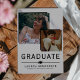 Feiern Sie Ihre Neuigkeiten mit Freunden und Familie und kreieren Sie die perfekte Ankündigung mit dieser "Graduate Minimal Foto Abschluss Announcement Card" Vorlage. Dieses hochwertige Design ist einfach zu anpassen, um einzigartig zu sein! Dieses Foto Abschluss Ankündigung zeigt das Lieblings-Foto eines Absolventen mit ihrem Klassenjahr, Name der High School oder Uni. Feiern wir den Absolventen!
