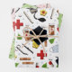 Geschenkverpackungsmuster für den Abschluss von Creative Doctor Medical School mit medizinischen Geräten und Graduierungskappen.