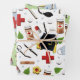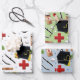 Geschenkverpackungsmuster für den Abschluss von Creative Doctor Medical School mit medizinischen Geräten und Graduierungskappen.