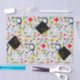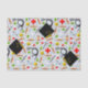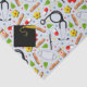 Künstlerisch medizinisches Designmuster mit medizinischer Versorgung, Blume und Graduierungskappen auf blauem Hintergrund.