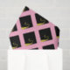 Creative Abschluss Geschenk und grad Party Dekoration Gewebe mit schwarz und golden Graduation Cap Muster auf rosa Hintergrund.