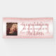 Gratulieren Sie Ihren Absolventen, die Lieben, mit einem gürtelglänzenden Rose Gold und rosa Glitzer-Banner personalisiert mit ihrem Foto und Namen mit zusätzlichem Funkeln und Ihre individuelle Nachricht (das Beispiel sagt GRATULATIONS TO UNSER GRADUATE mit einem bearbeitbaren Jahr hinter. FOTO TIPP: Wählen Sie ein Foto mit dem Thema in der Mitte und/oder schneiden Sie es vor dem Hochladen auf eine ähnliche Form wie vor dem Hochladen. Kontaktieren Sie den Designer per Zazzle Chat oder makeitaboutyoustore@gmail.com , wenn Sie dieses Design modifizieren möchten, an einem anderen Produkt wünschen oder Artikel koordinieren möchten.