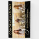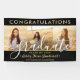 Fügen Sie eine elegante personalisierte Touch zu Uni- oder High School Graduiertendekorationen mit einem individuellen 3 Foto Collage Banner hinzu. Die Bilder und alle Formulierungen auf dieser Vorlage sind einfach zu personalisieren, und die Farben können mit dem Zazzle-Design-Tool leicht verändert werden. Das Schwarz-Gold-Design umfasst eine Mütze aus Imitat, eine handgeschriebene Schriftzeichen-Kalligraphie, eine schicke, moderne minimalistische Typografie und drei Fotos Ihrer Wahl, wie Seniorenbilder oder Bilder aus der Anlaufzeremonie. Bitte beachten Sie, dass Gold farblich gedruckt ist, nicht metallische Folie. Dieses große Graduiertenschild kann an einer Wand angebracht werden, um die Gäste zu den Feiern zu empfangen, oder als lustige und stilvolle Foto-Kulisse verwendet werden. Herzlichen Glückwunsch an den Absolventen!
