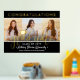 Fügen Sie der Uni- oder Highschool-Abschluss-Party-Dekoration eine elegante personalisierte Touch mit einem 3-Foto-Collage 18"x24" Schwarz- und Goldfolie-Druck hinzu. Bilder und alle Formulierungen auf dieser Vorlage sind einfach zu personalisieren. (IMAGE PLACEMENT TIP: Eine einfache Möglichkeit, ein Foto genau so zu zentrieren, wie Sie es gewollt haben, ist es, es einzuschneiden, bevor Sie es auf die Zazzle-Website hochladen.) Das Design in Schwarz, Weiß und Gold besteht aus echter metallischer Folie, eleganter, handgeschriebener Schrift-Kalligraphie im schwarzen Stil, stilvoller moderner minimalistischer Typografie und drei Fotos Ihrer Wahl, wie Seniorenbildern oder Bildern aus der Anlaufzeremonie. Dieses Party-Schild ist eine elegante Art, den besonderen Tag zu feiern. Herzlichen Glückwunsch an den Absolventen!