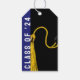 Creative Abschluss Gratulationen Geschenke Tags, mit schwarzer Kappe mit goldenen Tassel auf einem blauen Hintergrund für High School und Uni. Text bearbeiten, um Jahr hinzuzufügen. Fügen Sie den Namen von grad hinzu, um ihn weiter anzupassen.