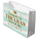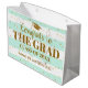 Feiern Sie Ihren Graduate mit dieser festlichen Geschenktasche mit einem lustigen, trendigen, minzgrün und weiß gestreiften Hintergrund und Ihrem eigenen Text, betont durch Imitate goldene glitzernde Konfetti und eine vergoldete Grad Mütze. Ideal für Gymnasien oder Uni-Abschluss.