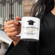 Dieses trendige Senior Abschluss Tasse Geschenk bietet schicke schwarze Typografie unter einer High School oder Uni Graduierte schwarze Mütze für die Senior-Klasse von 2023. Passen Sie Ihren Namen und Ihre Klasse unter der schönen Kalligrafie an Herzlichen Glückwunsch für einen großartigen Abschluss-Sake.