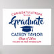 Fügen Sie eine personalisierte Touch zu einer Uni- oder High School Abschluss-Feier mit einem eleganten roten, weißen und blauen 18"x24" Poster hinzu. Der gesamte Text ist einfach anzupassen. Das Design besticht durch einen weißen Hintergrund, eine blaue Mörtel-Kappe, eine stilvolle moderne Typografie und handgeschriebene Schriftzeichen-Kalligraphie. Dieses Partyschild ist eine elegante Art, den besonderen Tag zu feiern. Herzlichen Glückwunsch an den Absolventen!