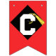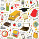 Abschlussfeier Glückwunschdekoration mit schwarzer und goldener Abschlussmütze auf rotem, goldenem, blauem und grünem Hintergrund.