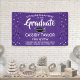 Fügen Sie eine personalisierte Touch zu Uni oder High School Abschluss Party Dekorationen mit diesem maßgeschneiderten lila, weiß und schwarz Banner. Der gesamte Text ist einfach anzupassen, um Namen, Klassenjahr, Schule, Abschluss, Auszeichnungen, inspirierende Zitate oder anderen Text Ihrer Wahl. Das Design besticht durch einen lila Hintergrund, eine schwarze Mörtel-Kappe, festliche Konfetti-Punkte, stilvolle moderne Typografie und handgeschriebene Schriftzeichen-Kalligrafie. Dieses Party-Schild ist eine elegante Art, den besonderen Tag zu feiern. Herzlichen Glückwunsch an den Absolventen!