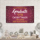 Fügen Sie eine personalisierte Touch zu Uni oder High School Graduiertendekorationen mit diesem maßgeschneiderten maroon rot und goldgelb Banner. Der gesamte Text ist einfach anzupassen, um Namen, Klassenjahr, Schule, Abschluss, Auszeichnungen, inspirierende Zitate oder anderen Text Ihrer Wahl. Das Design besticht durch einen bordeauxroten Hintergrund, eine Mörtel-Kappe, festliche Konfetti-Punkte, stilvolle moderne Typografie und handgeschriebene Schriftzeichen-Kalligraphie. Bitte beachten Sie, dass Gold farblich gedruckt ist, nicht metallische Folie. Dieses Party-Schild ist eine elegante Art, den besonderen Tag zu feiern. Herzlichen Glückwunsch an den Absolventen!