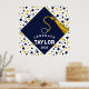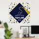 Creative Graduation Party Poster mit marineblau grad Kappe mit goldener tassel auf konfetti Hintergrund. Zum Personalisieren fügen Sie Text seinen Namen und das Senior Class Year hinzu.