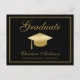 Abschluss Gold Grad Cap & Script auf schwarzem Par Einladungspostkarte